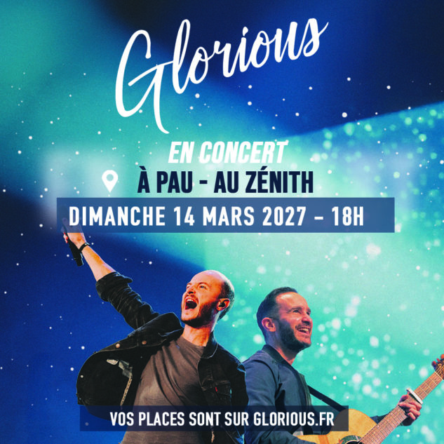 Glorious vous invite à vivre une grande soirée de louange. Venez vivre une soirée inoubliable ! Plus qu’un concert, c’est une expérience spirituelle intense, portée par des chants puissants, une atmosphère de prière et une énergie collective qui touche le cœur. Un moment unique pour se rassembler, chanter, espérer et laisser Dieu agir au cœur de la musique.